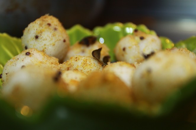 - In a kadai add a spoon of ghee and when hot add whole masalas – Cinnamon, Cloves and Elaichi Powder.