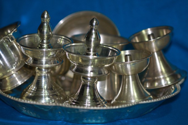 My love with my silverware started actually after coming to the US. All my silverware that was bought during my wedding was locked and stored in safe keeping, getting tarnished with age and dust. When I saw my aunt and her impressive array of little silver articles that she beautifully uses for her pooja, I decided there was really no point in allowing them to simply stay put in locked draws! I brought them out and started using them in my everyday pooja and of course for special occassions like Navarathri, Pongal, Deepavali, Ganesh Chathurthi etc.
