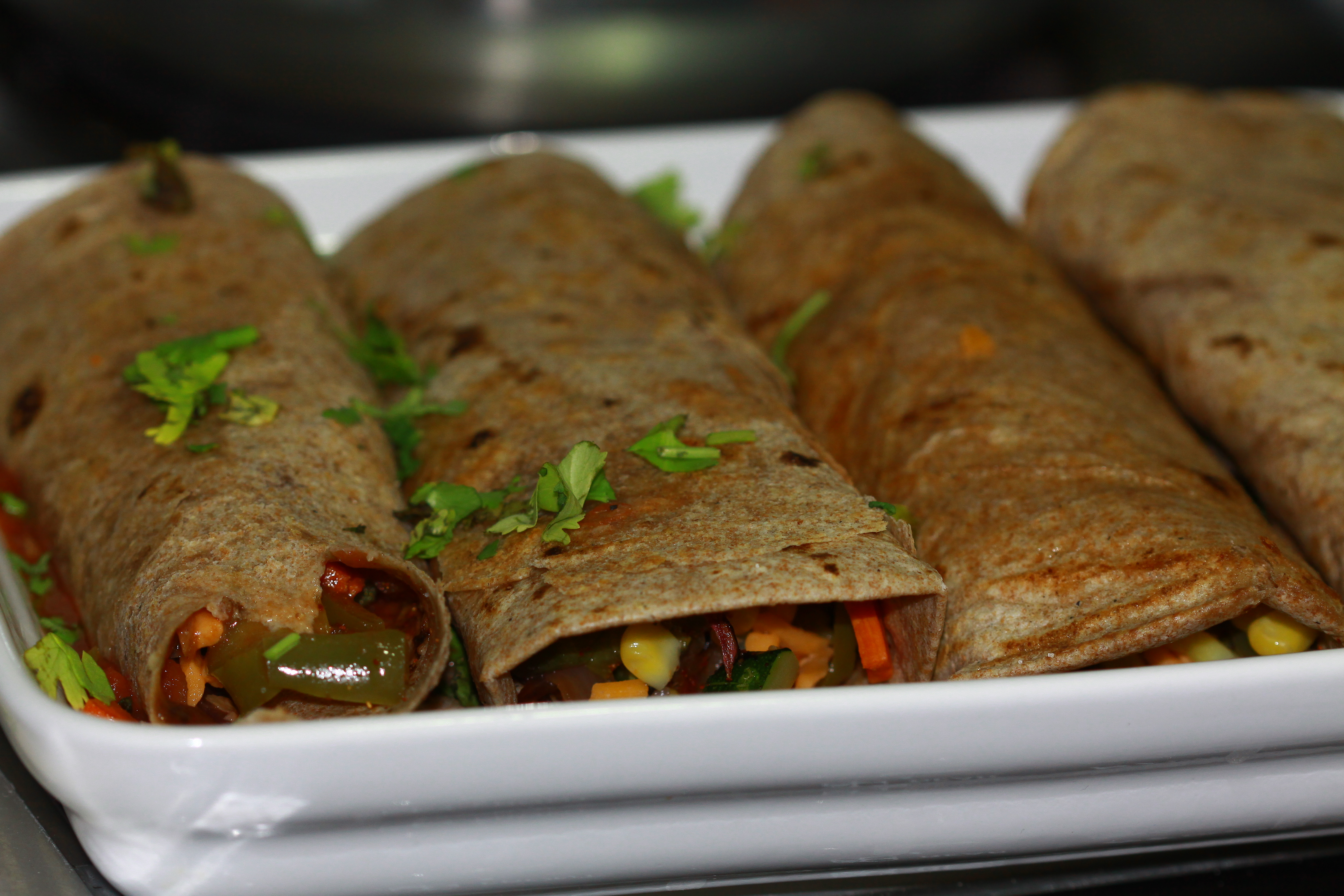• Slightly toast the whole wheat tortillas until they are warm and pliable.