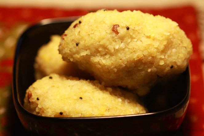 Its always an endeavor to cook with as less oil as possible, with as much fiber as possible, with as less calories as possible, with as much flavor as possible and so on and so forth. There is always a trade off here and with the mounting instances of lifestyle related diseases and its only getting more and more difficult to make this possible. My aim is to not get too off the handle and restrict me and my family, but more to moderate the measure of any intake and yet to make it more interesting by substituting rice with cracked wheat, oats , bulgar wheat, quinoa, cous cous etc. Here I take my traditional Pidi Kozhukkatais made with raw rice and make a healthier version of it using cracked wheat. The results were astoundingly delicious as any dish gets masked with Hotel Sambar or Tomato Chuthey so, one never really knows!!!