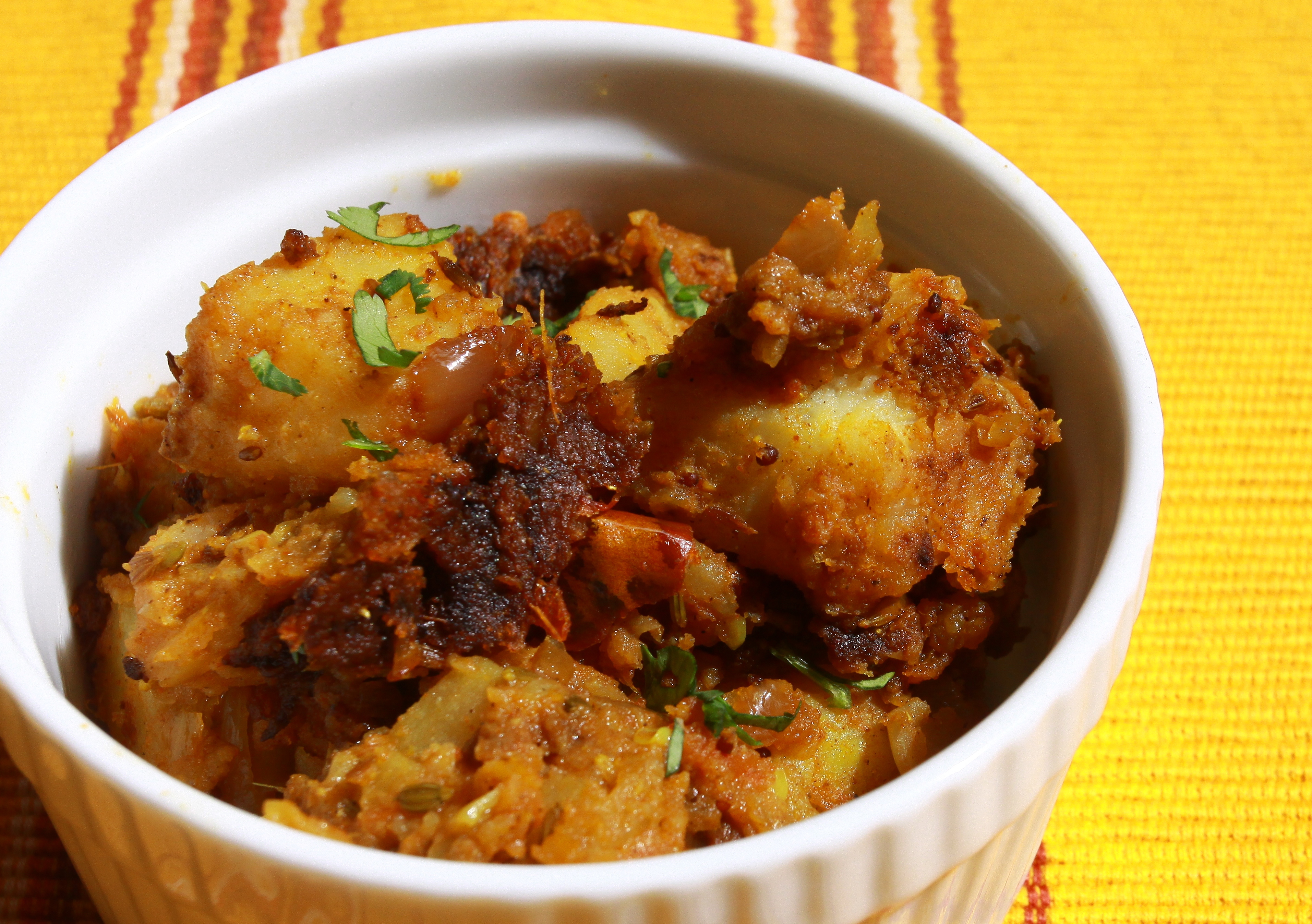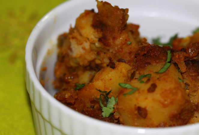 I remember having this particularly spicy aloo achari when I was training for a few days at Pune. Lunches were a wonderful spread with Fragrant Peas Pulav, cucumber raita, steaming hot Aloo Parathas with curd and Achar and this amazing Aloo Achari. I had it once again at a wonderful restaurant in Bangalore, The Orchid Metropolitan`s weekend buffet. And then I fell for the spicy sweet tanginess in this dry subji combined with the fact that its made with everyone`s favourite – Potatoes…What could ever go wrong here? It was a marriage made in heaven. The chef there was kind enough to let me know how its made but I am sure he would add his years of experience in making this dish. It does have a long list on ingredients, but the wonderful taste, makes it well worth the while.