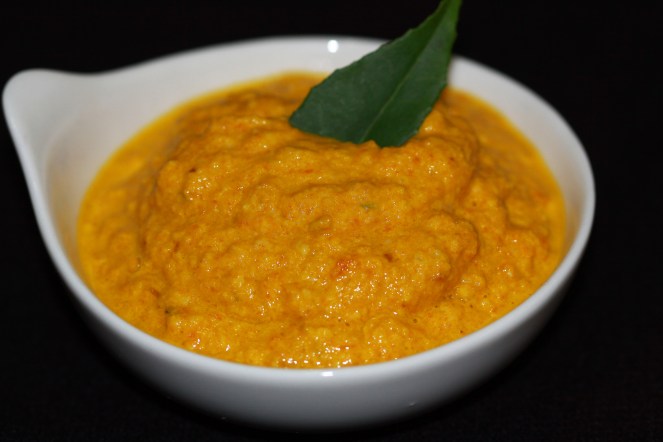 This is was a chutney borne out of my experiments in the kitchen with ingredients left over in the refrigerator. It was one of those days when your heart craves for steaming hot crisp dosas accompanied with garam sambar and chutney, only to realise that you are basically out of a couple tomatoes and coconut slices! Ditto with the cilantro and the mint was already dry and on its way out! I was left with a bag of fresh carrots and of course ginger that keeps for a long time so I decided to marry them off together to make something flavourful. Carrots are packed with beta carotenes and I always love this Ginger Carrot Creamy Soup so I decided they would complement each other in this chutney…they did and how!!!