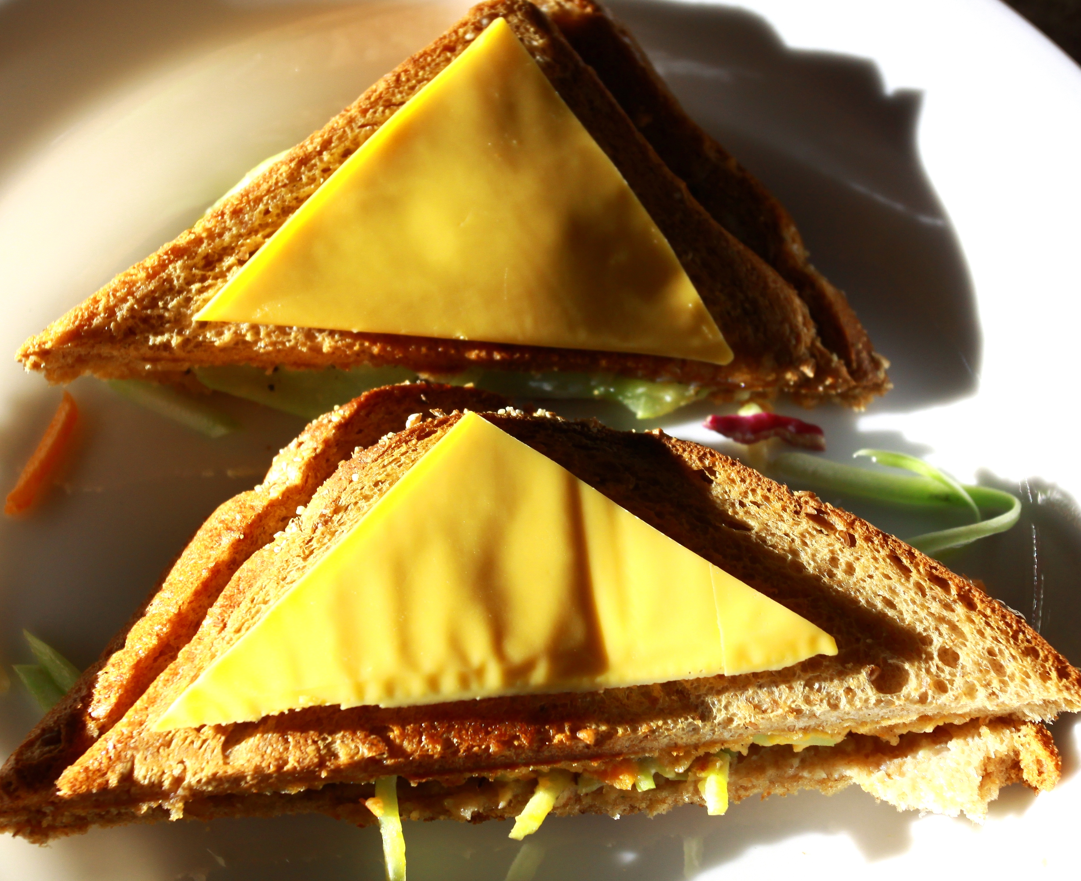 Everyday lunch for my older one has to be a creative, in bite size pieces, healthy, proportionate to her palate, seasoned, yet not filled with curry powders and masalas. It has to be healthy, but not loaded with veggies and stay crisp yet soaked in the sauces. It has to hold shape until afternoon, yet not get too dry that you would need to wash it down your throat. I love making grilled sandwiches, as they slightly tank up the taste and hold on to their filling. As far as the fillings are concerned, really sky is the limit and is well governed by what is leftover in the refrigerator.
