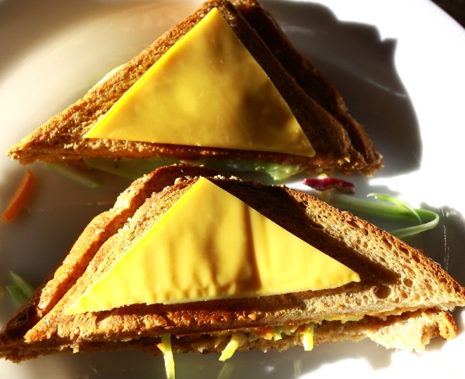 - Place a layer of American cheese slice and finish off with another slice of bread.