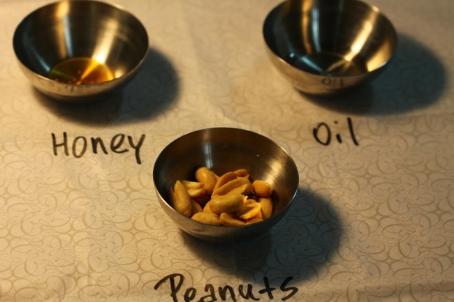 - Transfer to a food processor. Add the oil and give it a quick pulse. When its a little smooth and ground, add the honey