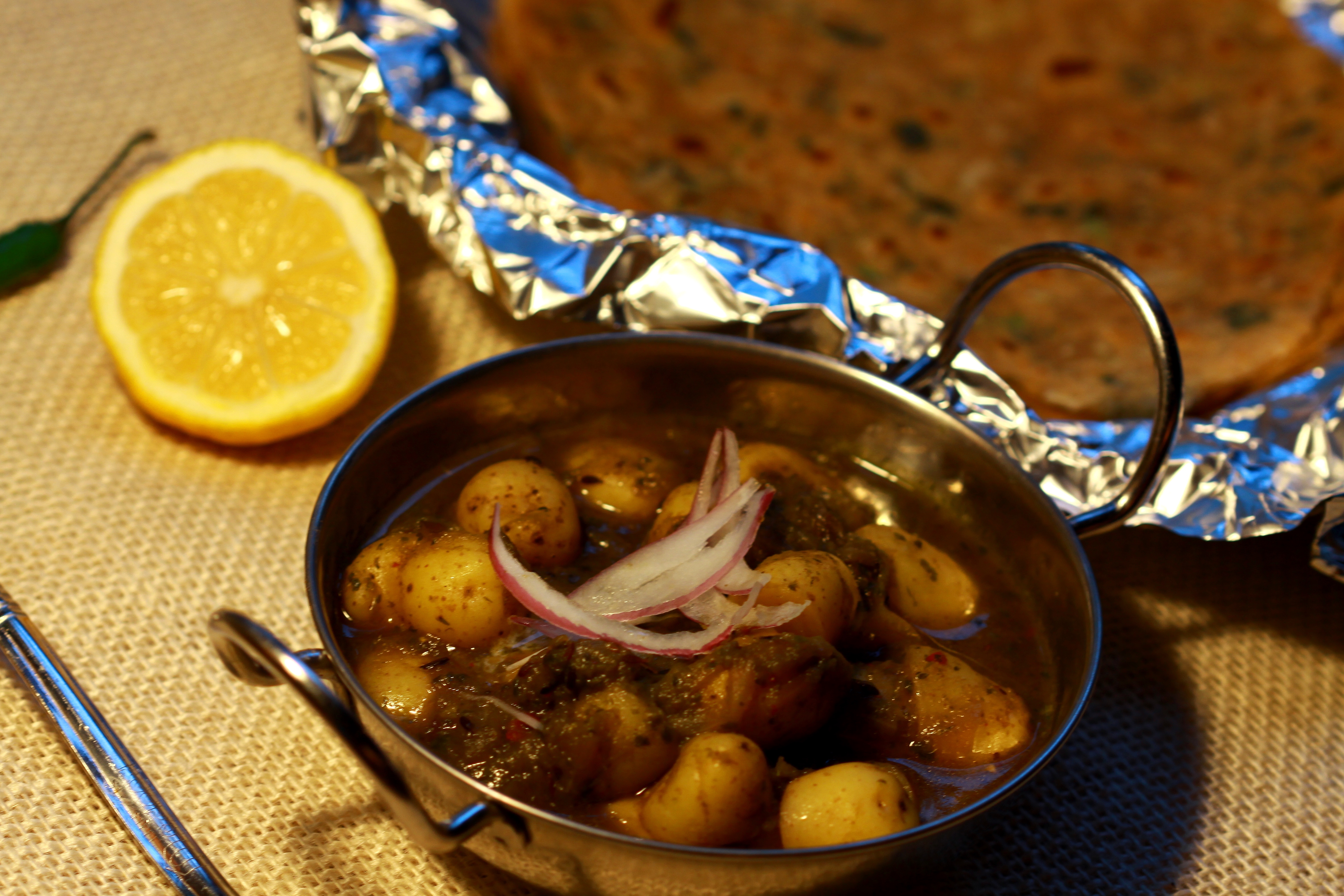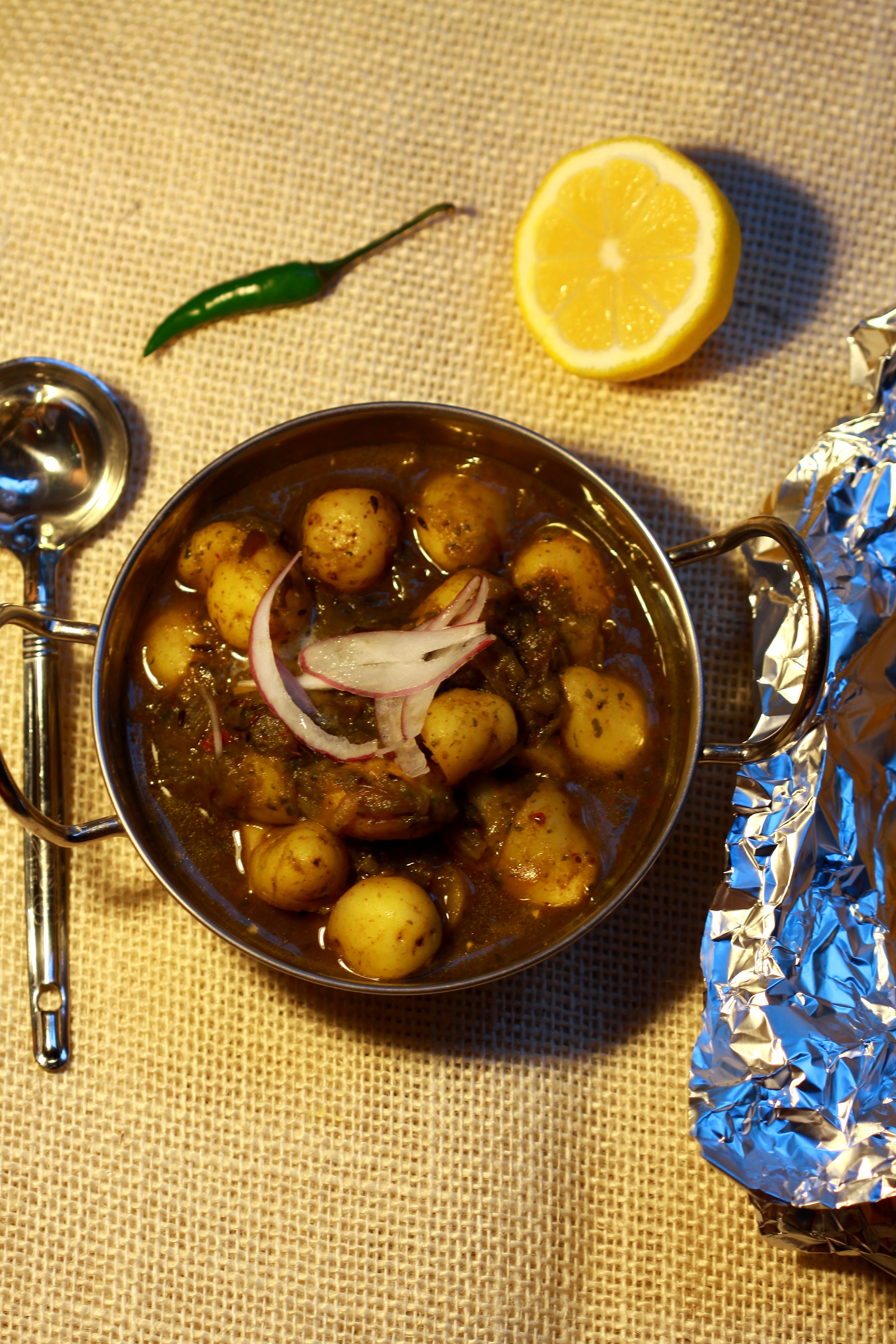Baby potatoes are always a pleasure to cook with as they are cute and tiny and cook so fast and most importantly they dont have to be peeled and they hold their own ground. They dont get too mushy unless you dont treat them properly. I enjoy so many recipes with baby potatoes some of my most favourite being, Aloo Dum, Baby Potatoes in Tomato Gravy and of course this Bihari Aloo Baingan. I love combining such contrasting veggies, as I feel they compliment each other…Plantains and long bean Mezhukkuvaratti is of course another favourite but we shall keep that speciality for another post. This is is inspired by one of my favourite chefs – Raghavan Iyer…I love his cook book andd the little anecdotes that he adds to the story behind his learning the recipe and its roots….