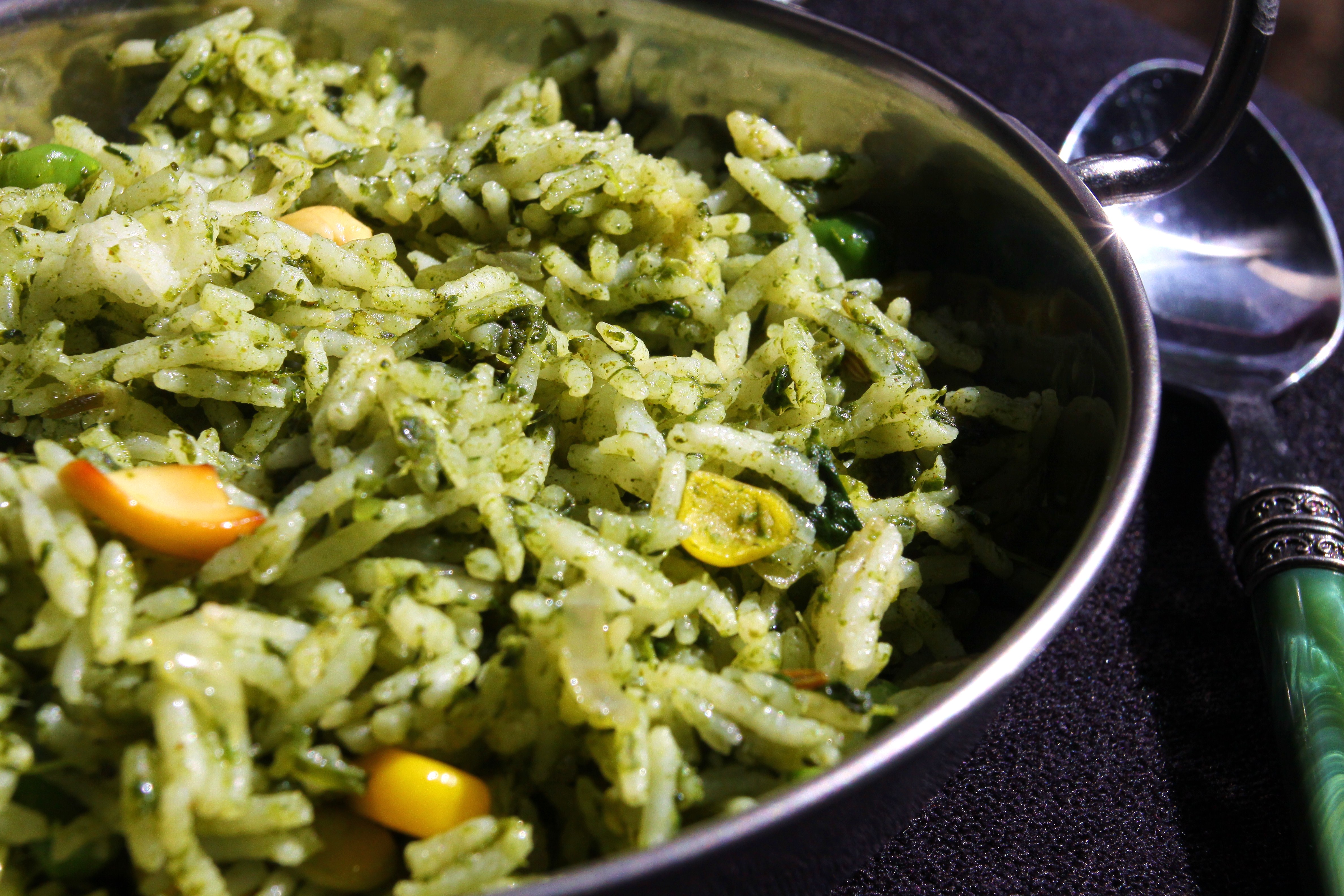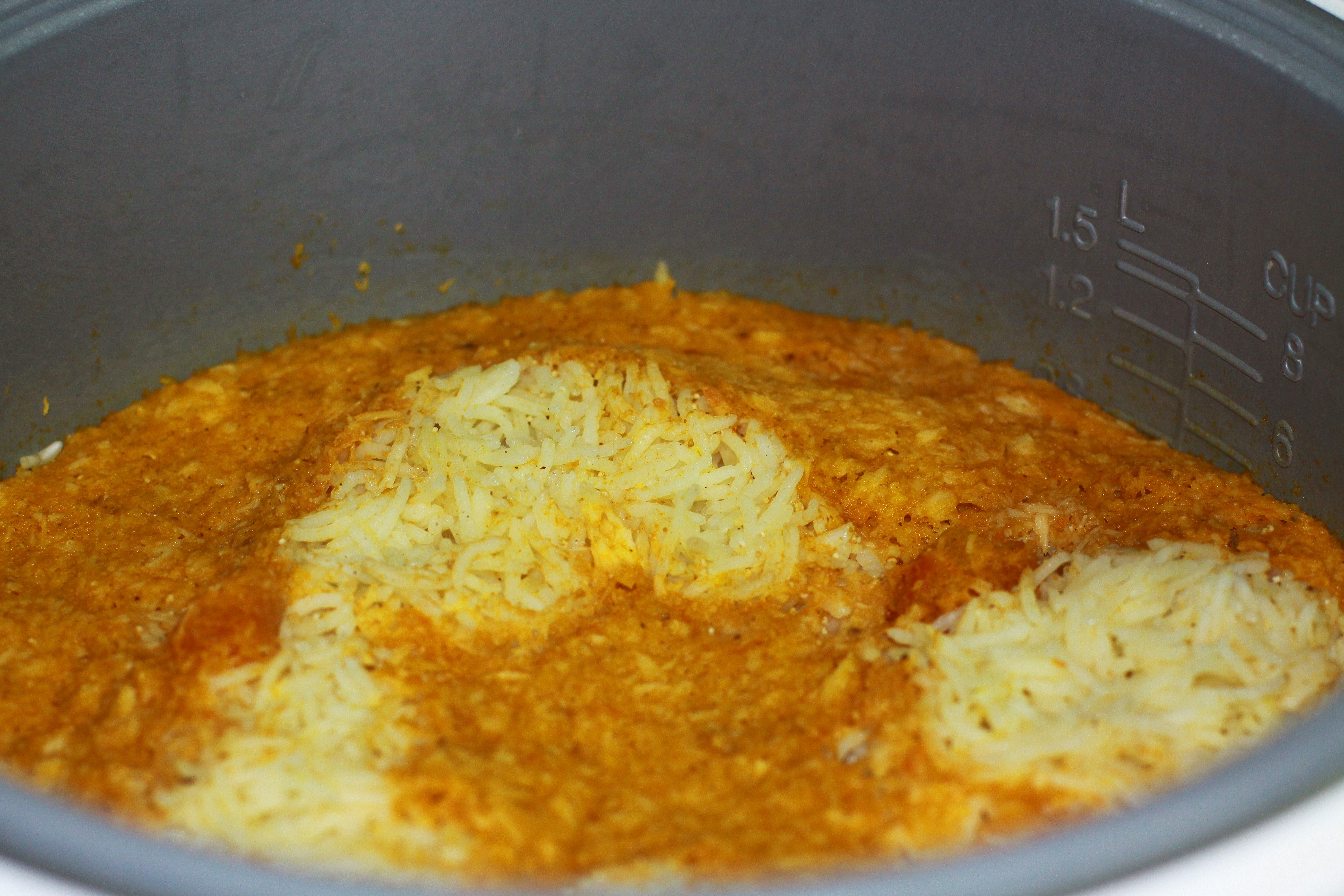 - Add this paste to the basmati rice. This should be part of the 3 1/2 cups of water that is added. So pour out the contents of the mixer in to a cup. If it is little less than a cup, add water and make it one cup.