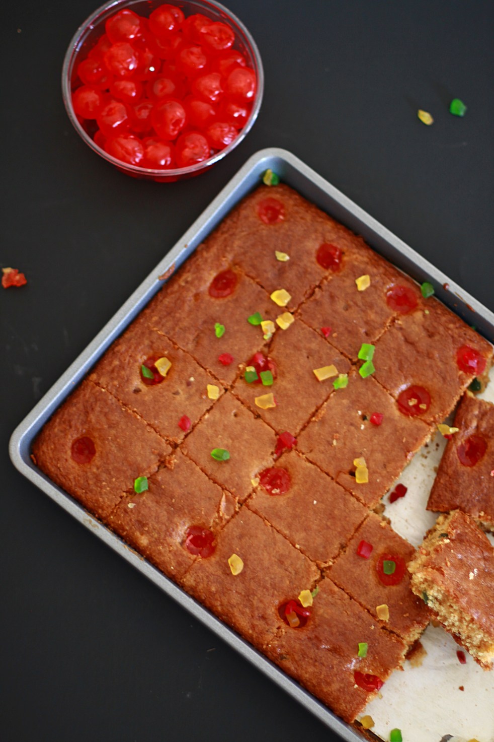 Plum Cake – It always brought back memories of Christmas holidays, time off from school, colorful stars outside homes, carols at school, and of course Plum Cake from the local bakery. It was truly a master piece and every bite would burst with sweet, tang from the raisins, the caramel sauce and the whole gamut of flavors that are so complex tapping in your taste buds in a way that you have never known before…I love this cake so much that I had decided I was going to make the egg less version of the Fruit Cake at home as often as I can. This is a more to go version and I love the compelling tastes in both of them a lot! It might seem like a lot of ingredients but once you actually bite in to this cake, you will agree that its completely worth it. The source of this recipe is from a friend R who got it from a post on a Facebook group.
