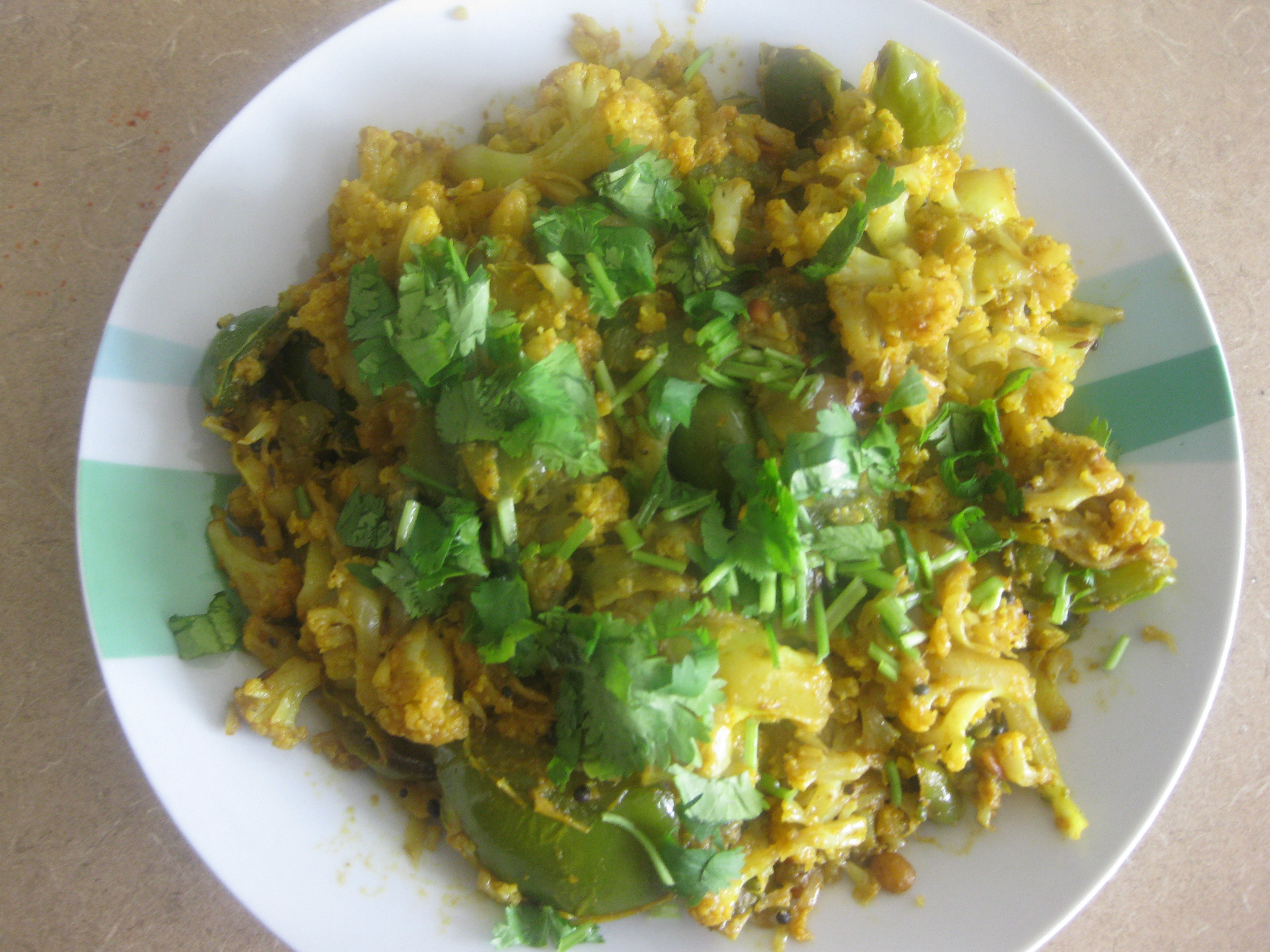 Cauliflower is a vegetable that`s both versatile and easy, at the same time can take the taste of any preparation or dish. When I saw this dish on Sandy`s cooking page, I wanted to try it immediately. Shaadi wali Gobhi uses simple ingredients in the pantry, but is very flavorful because of the way its prepared. I substituted Alu with panneer, so it satisfies my high fat requirement.