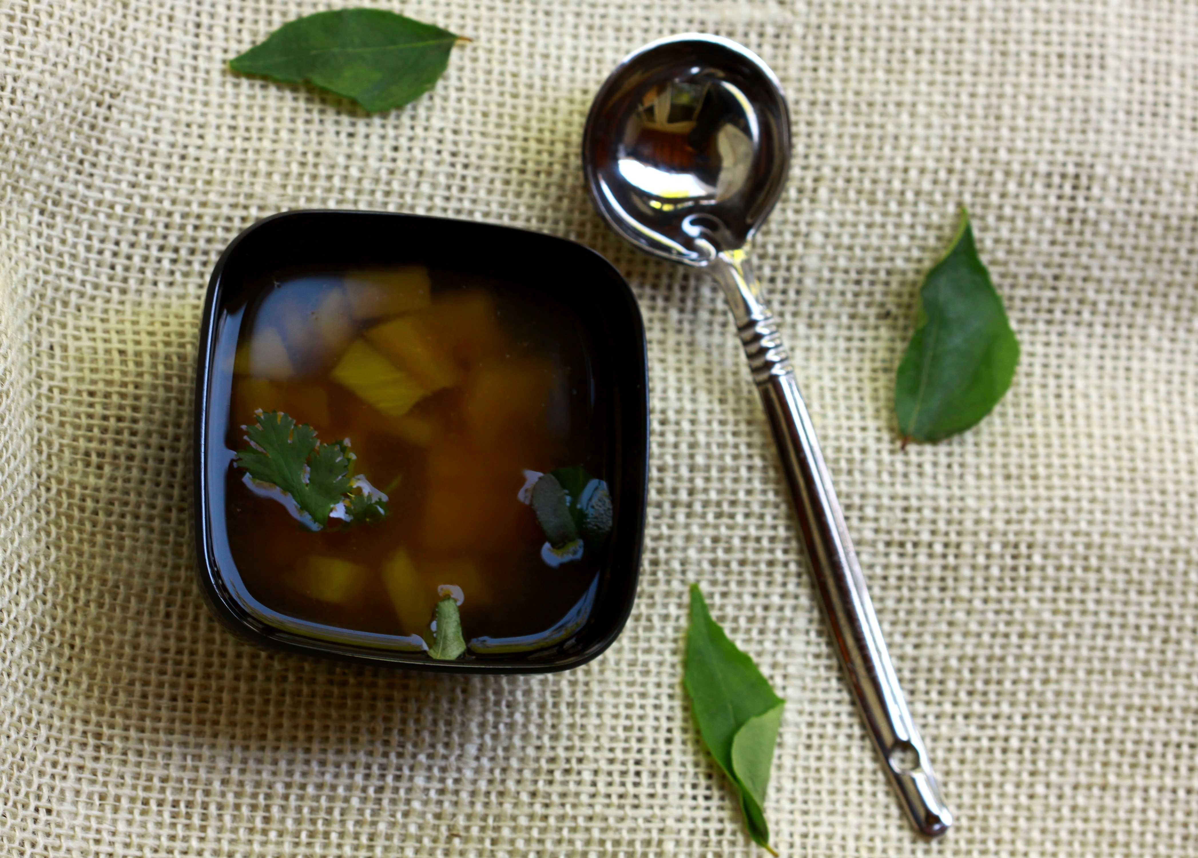 - Moderate the amount of jaggery/ sugar so as to give the rasam a hint of sweetness over the sharpness of the ginger and the pepper.
